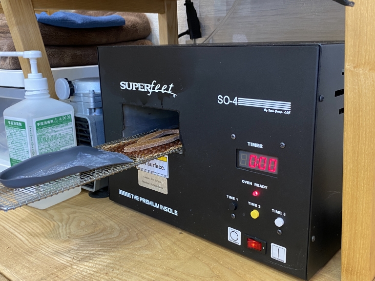というわけで、前置きが長くなりましたが、いざオーダーメイド中敷きを作ってもらいます。といっても、何日も待つ必要はありません。型をとって細かく調整しても20分程度で完成します。オーダーメイドなのに、このスピードは嬉しいですね。