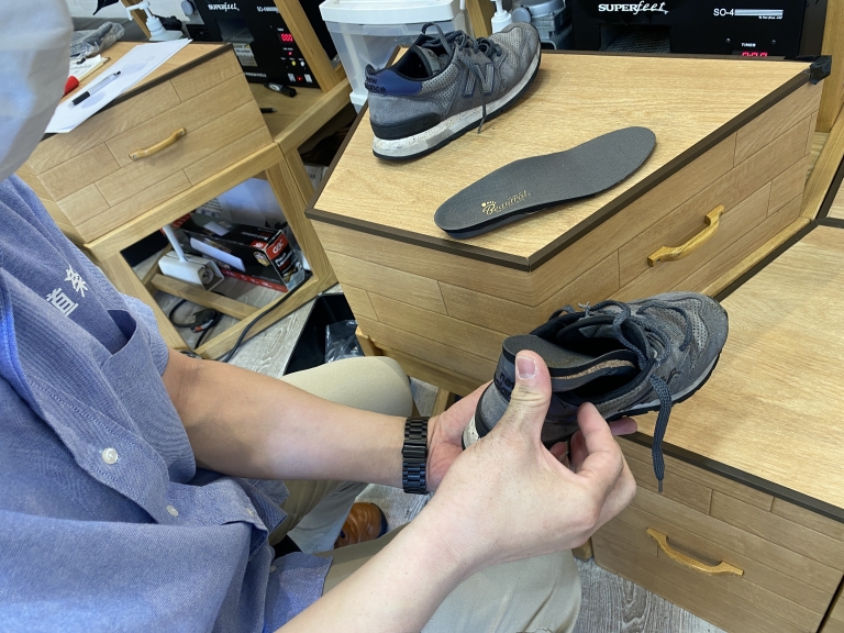 「インソールが入ると、普段とは違う足の使い方になるので、最初の2〜3週間は違和感を感じると思います。人によってはふくらはぎに筋肉痛が出たり、足が蒸れたりすることも。でも、それは歪んだ骨格を本来の位置に戻す過程の好転反応なので、心配いりませんよ」と照井さん。