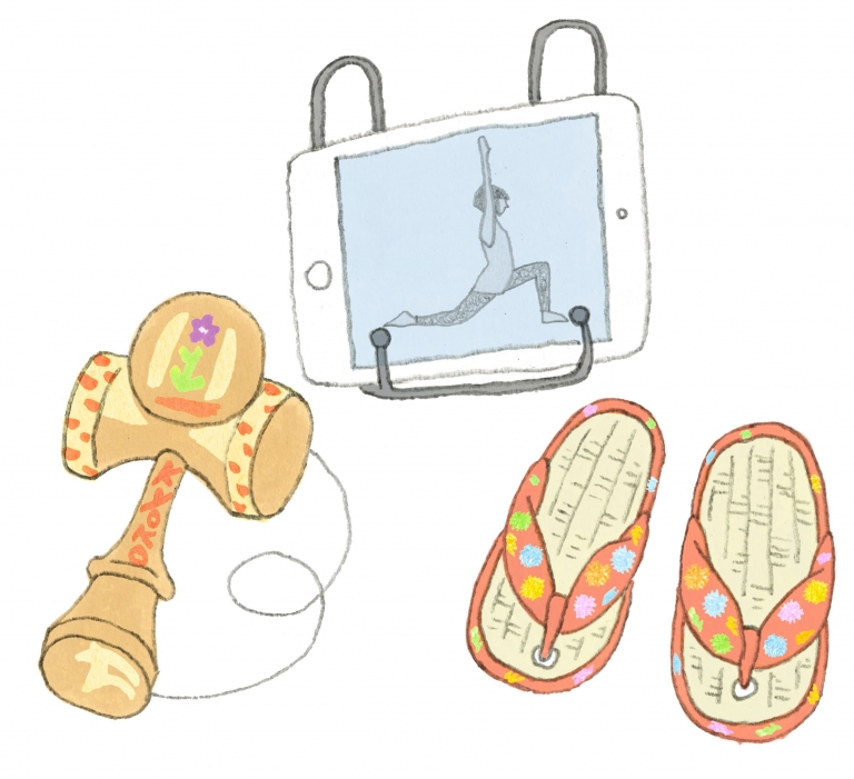 iPad、草履、それともう一つ、自分の健康維持に欠かせない道具の一つが、実はけん玉。コロナ禍で始めた趣味で、いつも孫と一緒に遊びながらやっています。これが意外と運動になるんです。全部の窪みに玉をうまく入れるには、膝をバネのように使いつつお腹にグッと力を入れて、体幹を整えないと絶対にうまくいかない。人は生きている限りは体を動かさなきゃいけないわけですが、ウォーキングや水泳だと、外出する必要がありますよね。それだと、時間の都合や体調次第ではできないこともあるかもしれないけれど、けん玉なら半畳のスペースで、思い立ったらすぐできます。楽しいですよ。