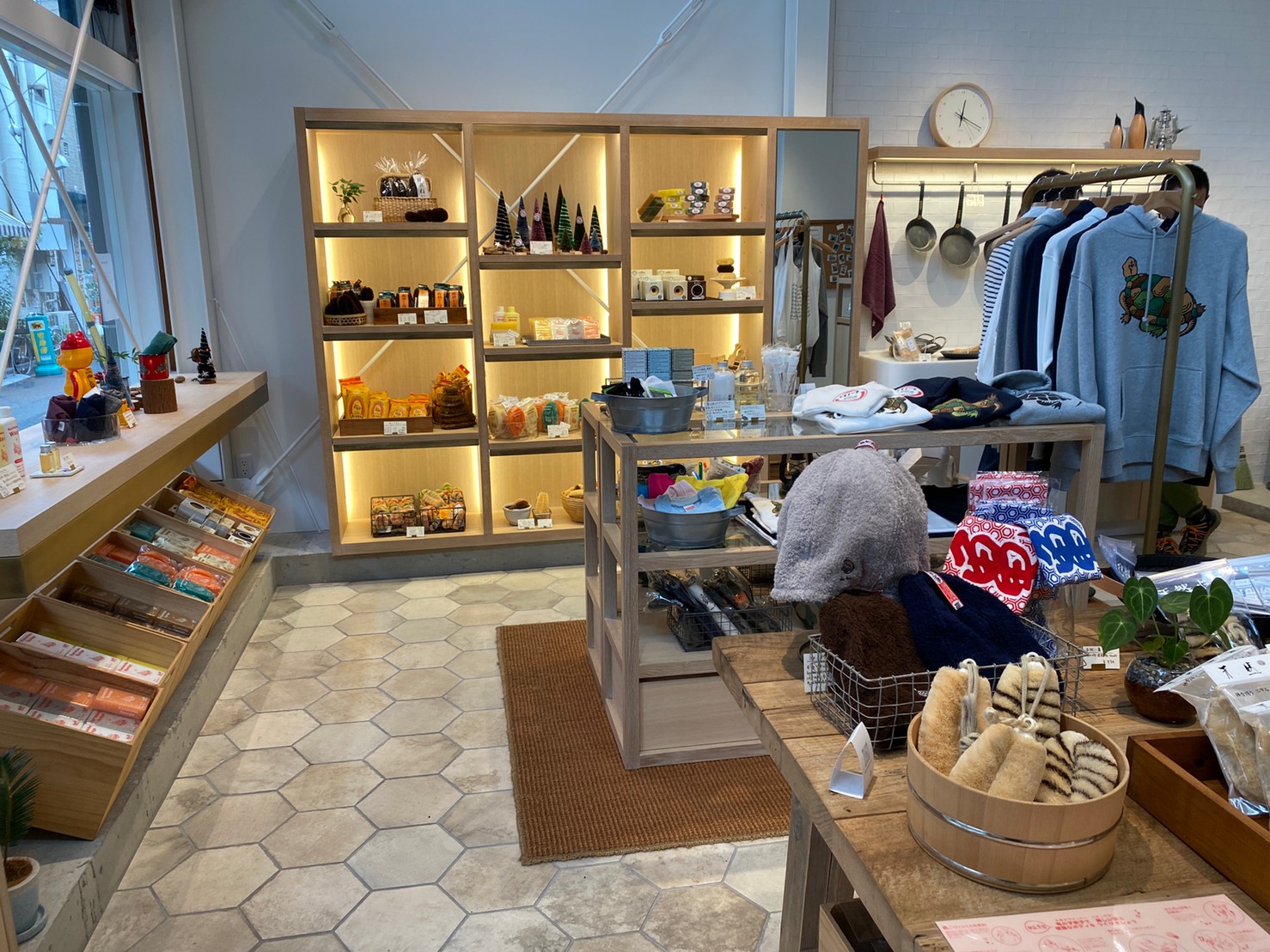 というわけで冬のある日、向かったのは東京メトロ千代田線の根津駅からほど近い『亀の子束子 谷中店』。外観も内観も、一見すると亀の子束子のお店とはわからないほどオシャレ。たわしと一緒に、ドイツ製の鉄フライパンやTシャツなどもディスプレイされています。店長の早戸千寿さんによれば、2020年11月に今のようにリニューアルしたそう。さながらライフスタイル・ショップのような明るい雰囲気です。