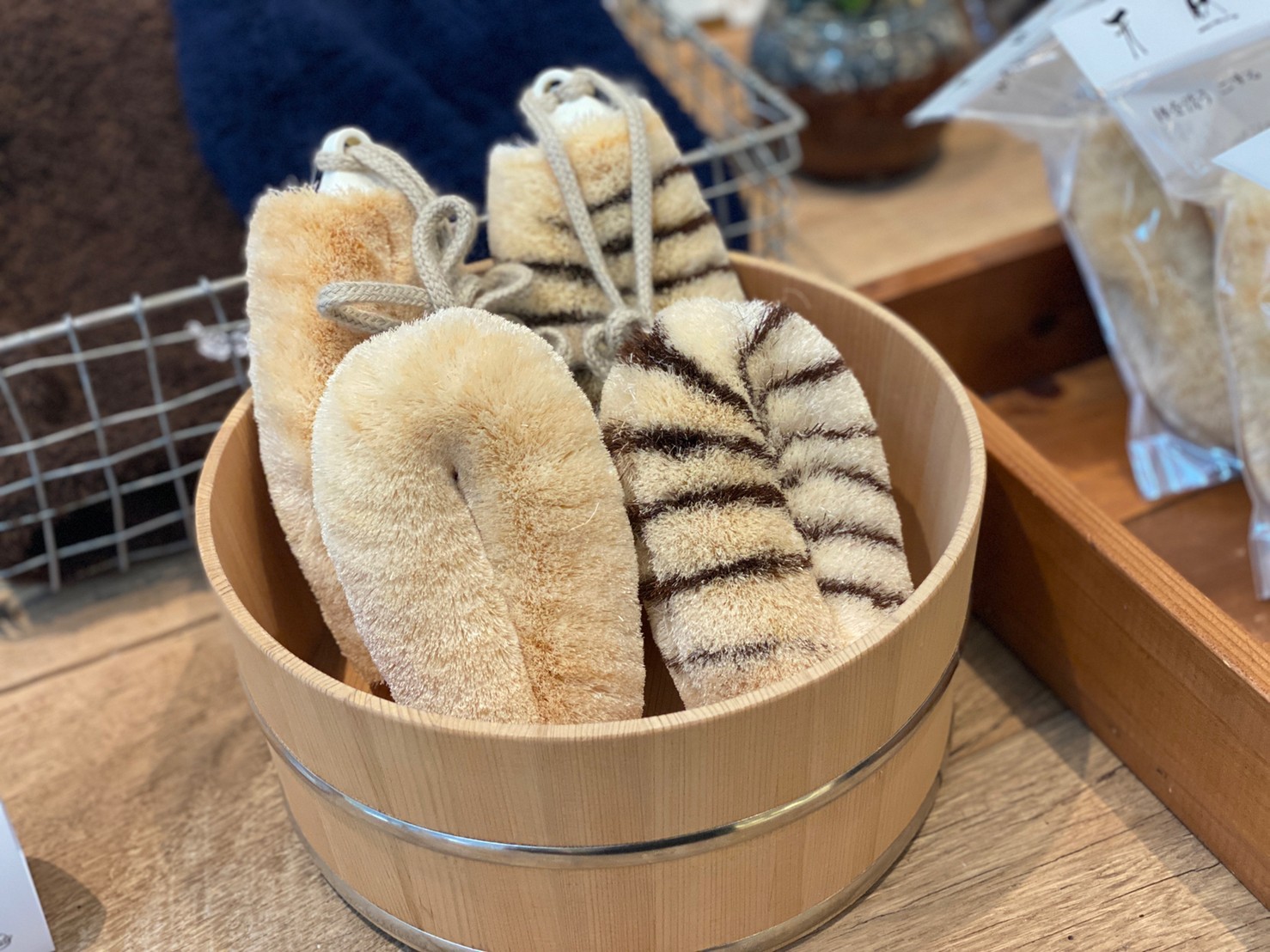 「初心者ですが、どれを使ったらいいですかね?」と店長の早戸さんに訊くと、「初めてなら “サトオさん”がオススメです」とのお答え。「……サトオ? 佐藤さん?」。一瞬、頭がこんがらがりますが、実は亀の子束子のボディケア用たわしのネーミングの一部は、亀の子束子で実際に働いていたスタッフや職人さんの名前になっているんです。なんともユニークですね。