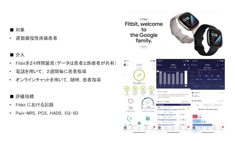 筆者らは、運動器の疼痛を有する患者において、Fitbit社のウェアブル端末の使用と患者指導を併用して実施しました。