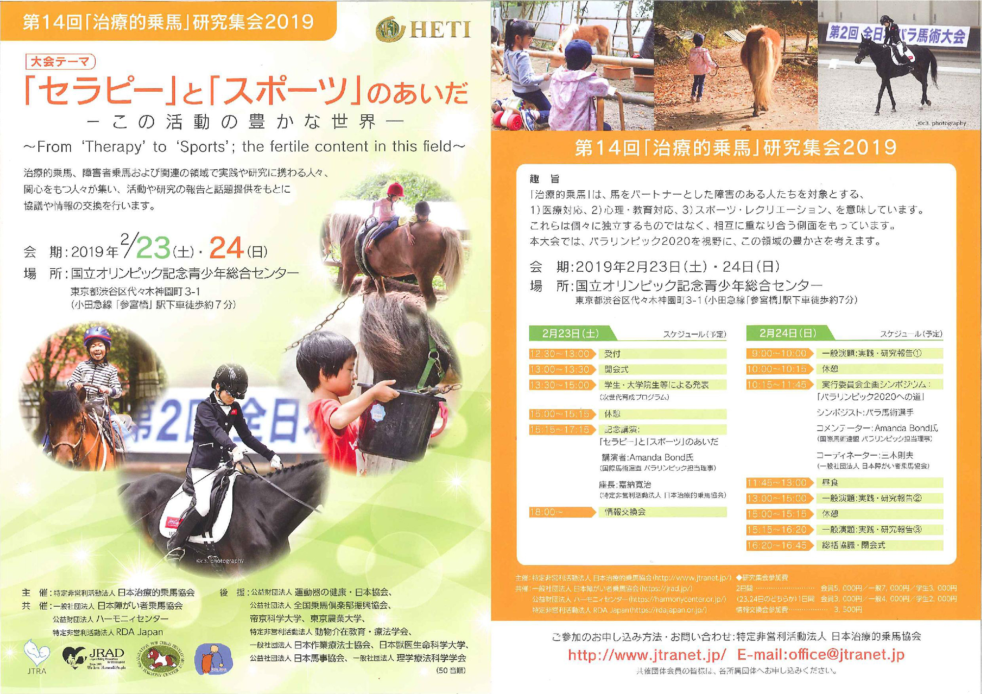 TOPIC : 障害のある人々のリハビリや教育、スポーツの場となる「治療的乗馬」2019年2月23・24日 第14回「治療的乗馬」研究集会が開催されます