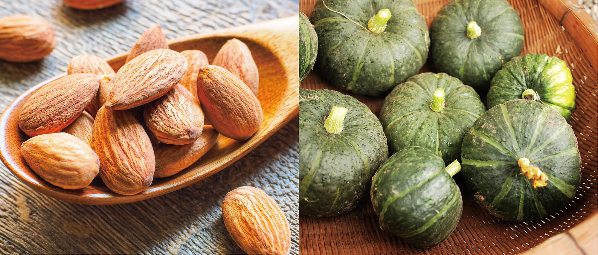 ちなみにビタミンEはアーモンドなどのナッツ類、ひまわり油、こめ油、カボチャなどに多く含まれていますので、とくにお酒で顔が赤くなりやすい人は、普段から積極的に摂っておくといいでしょう。